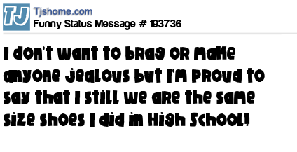 X is I don't want to brag or make anyone jealous but I'm proud to say that I still we are the same size shoes I did in High School!