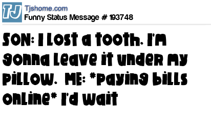 X says SON: I lost a tooth. I'm gonna leave it under my pillow. ME: *paying bills online* I'd wait