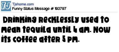 X says  Drinking recklessly used to mean tequila until 4 am. Now its coffee after 5 pm.