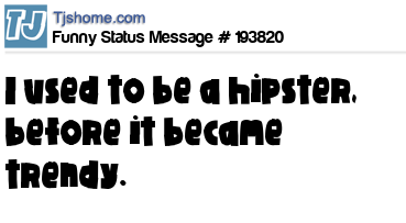 - # 88167 After years of being called 'behind the times', I've finally got a trendy haircut. Just check out my profile pic on MySpace, losers! (