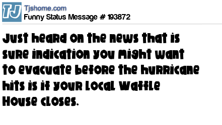 X is Just heard on the news that is sure indication you might want to evacuate before the hurricane hits is if your local Waffle House closes.