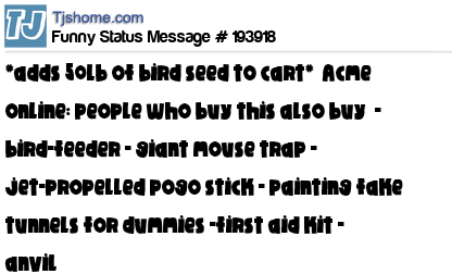 X says *adds 50lb of bird seed to cart* Acme online: people who buy this also buy - bird-feeder - giant mouse trap - jet-propelled pogo stick - painting fake tunnels for dummies -first aid kit - anvil