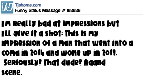 X says I’m really bad at impressions but I’ll give it a shot: This is my impression of a man that went into a coma in 2014 and woke up in 2019. “Seriously? That dude? Aaand scene.