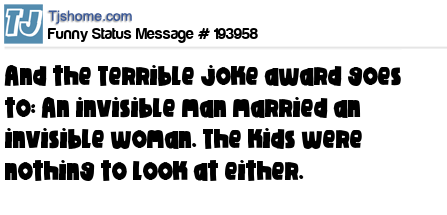 X says And the Terrible joke award goes to: An invisible man married an invisible woman. The kids were nothing to look at either.