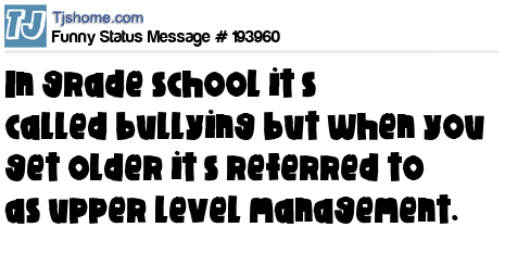 - # 87679 In grade school it's called bullying but when you get older it's referred to as upper level management.