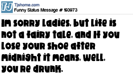 - # 167942 Life is not a fairy tale guys........if you lose a shoe by midnight your drunk.