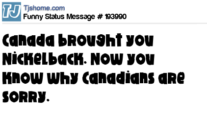 X says Canada brought you Nickelback. Now you know why Canadians are sorry.