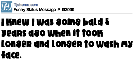 - # 193992 I knew I was going bald when it took longer and longer to wash my face.