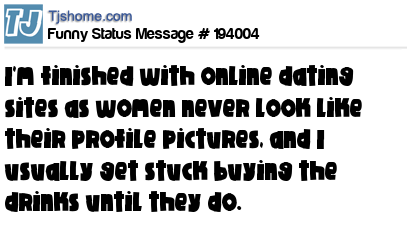 X is I'm finished with online dating sites as women never look like their profile pictures, and I usually get stuck buying the drinks until they do.