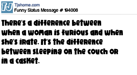 X says There's a difference between when a woman is furious and when she's irate. It's the difference between sleeping on the couch or in a casket.