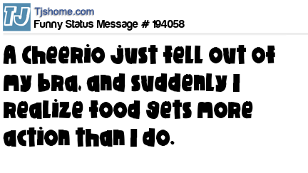 X says A Cheerio just fell out of my bra, and suddenly I realize food gets more action than I do.