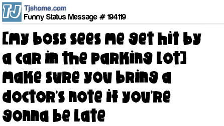 X says [my boss sees me get hit by a car in the parking lot] make sure you bring a doctor's note if you're gonna be late