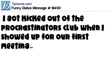 X says I got kicked out of the procrastinators club when I showed up for our first meeting..