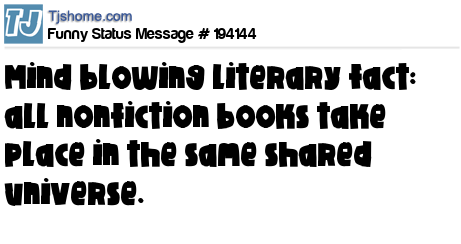 X says Mind blowing literary fact: all nonfiction books take place in the same shared universe.