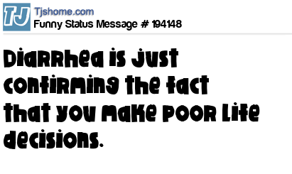 X says Diarrhea is just confirming the fact that you make poor life decisions.