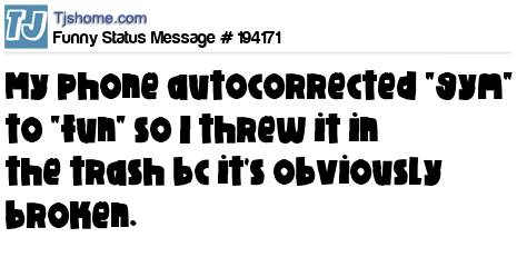 X says My phone autocorrected "gym" to "fun" so I threw it in the trash bc it's obviously broken.