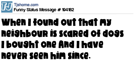 X says When I found out that my neighbour is scared of dogs I bought one And I have never seen him since.