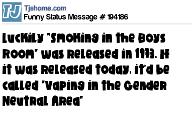 X says Luckily "Smoking in the Boys Room" was released in 1973. If it was released today, it'd be called "Vaping in the Gender Neutral Area"
