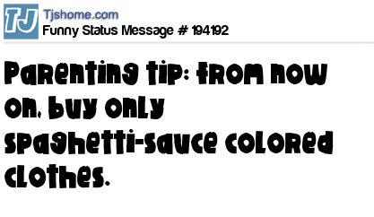 X says Parenting tip: from now on, buy only spaghetti-sauce colored clothes.