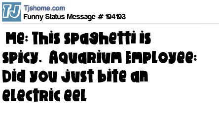 X says Me: This spaghetti is spicy. Aquarium Employee: Did you just bite an electric eel