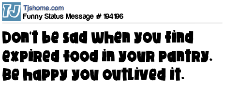 X says Don't be sad when you find expired food in your pantry. Be happy you outlived it.