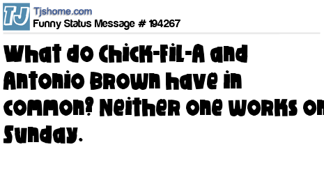 X says What do Chick-Fil-A and Antonio Brown have in common? Neither one works on Sunday.