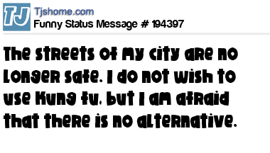 X says The streets of my city are no longer safe. I do not wish to use kung fu, but I am afraid that there is no alternative.