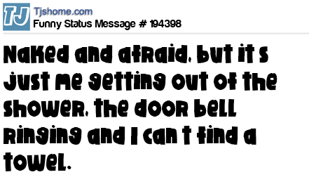 X says Naked and afraid, but it’s just me getting out of the shower, the door bell ringing and I can’t find a towel.