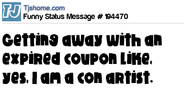 X says Getting away with an expired coupon like, yes, I am a con artist.