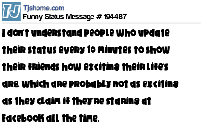 X is I don't understand people who update their status every 10 minutes to show their friends how exciting their life's are, which are probably not as exciting as they claim if they're staring at Facebook all the time.