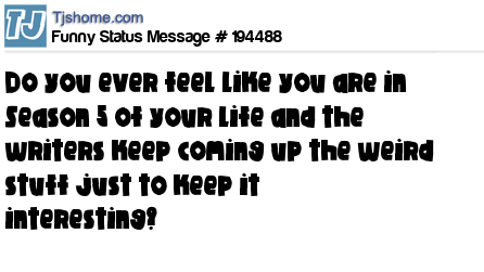 X says Do you ever feel like you are in Season 5 of your life and the writers keep coming up the weird stuff just to keep it interesting?