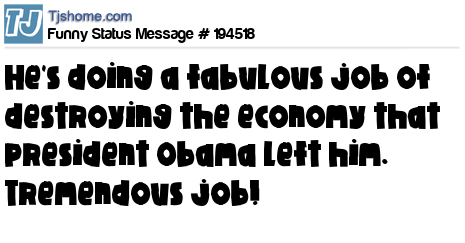 X is He's doing a fabulous job of destroying the economy that president Obama left him. Tremendous job!