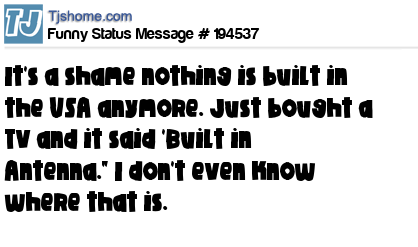 X says It's a shame nothing is built in the USA anymore. Just bought a TV and it said 'Built in Antenna." I don't even know where that is.