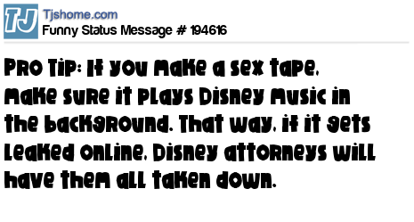 X says Pro Tip: If you make a sex tape, make sure it plays Disney music in the background. That way, if it gets leaked online, Disney attorneys will have them all taken down.