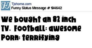 X says We bought an 82 inch TV. Football: awesome Porn: terrifying