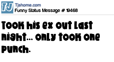 - # 39970 - I took my ex out last night. It only took one punch :)