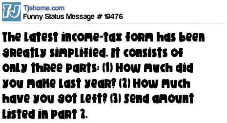 X  The latest income-tax form has been greatly simplified. It consists of only three parts: (1) How much did you make last year? (2) How much have you got left? (3) Send amount listed in part 2.