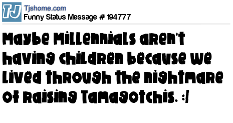 X says Maybe Millennials aren't having children because we lived through the nightmare of raising Tamagotchis. :/