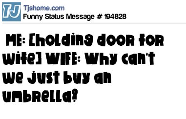 X says ME: [holding door for wife] WIFE: Why can't we just buy an umbrella?
