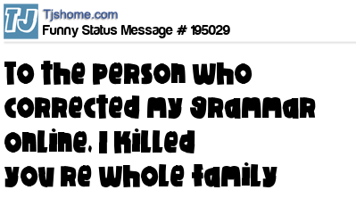 X says To the person who corrected my grammar online, I killed you’re whole family