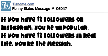 X is If you have 12 followers on Instagram, you’re unpopular. If you have 12 followers in real life, you’re the messiah.