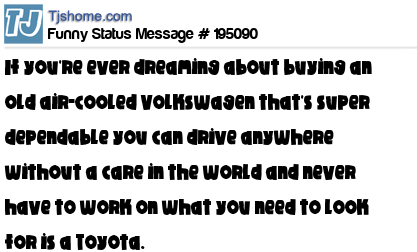 X is If you're ever dreaming about buying an old air-cooled Volkswagen that's super dependable you can drive anywhere without a care in the world and never have to work on what you need to look for is a Toyota.