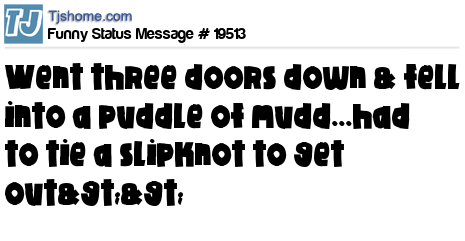 X went three doors down & fell into a puddle of mudd...had to tie a slipknot to get out>>