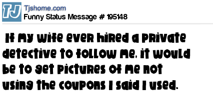 X says If my wife ever hired a private detective to follow me, it would be to get pictures of me not using the coupons I said I used.