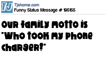 X says Our family motto is "Who took my phone charger?"
