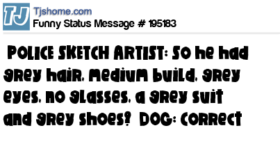 - # 188847 POLICE SKETCH ARTIST: "So he was medium build, grey hair, grey eyes, grey tie, a grey suit and grey shoes?" DOG: "Correct"