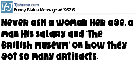 X is Never ask a woman Her age, a man His salary and 'The British museum' on how they got so many artifacts.