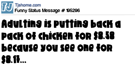 X says Adulting is putting back a pack of chicken for $8.58 because you see one for $8.17...