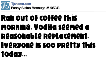 - # 207549 I’m drinking coffee right now because people think you’ve got a problem if you drink vodka on a Saturday morning.