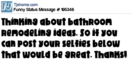 X is Thinking about bathroom remodeling ideas. So if you can post your selfies below that would be great. Thanks!